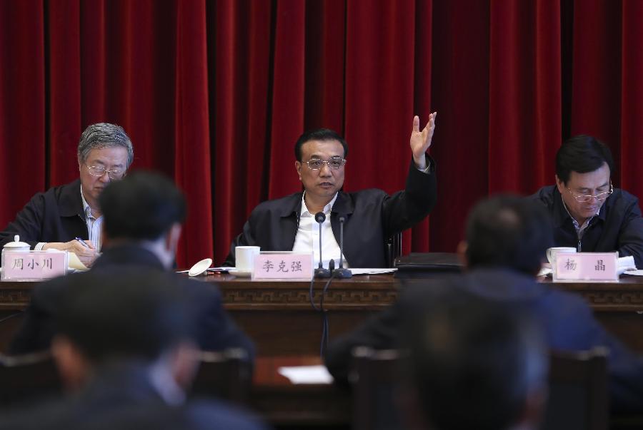 Chinese Premier Li Keqiang(C) presides over a symposium on the economic work of northeastern provinces of Liaoning, Jilin and Heilongjiang, in Changchun, Jilin, April 10, 2015. (Xinhua/Ding Lin) |