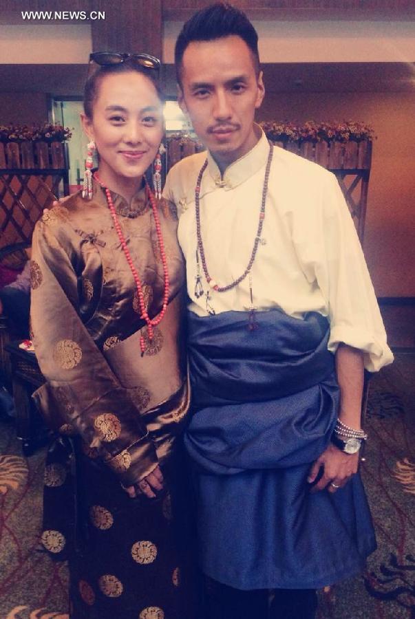 This is a photo of the bridegroom Gerong Phuntsok (R) and his wife Dawa Zhoima. Wearing traditional Tibetan costumes and also modern clothes in their wedding photos, the Tibetan couple has become a hot topic on Tencent's instant messaging app Wechat, with their photos receiving clicks of more than 100,000 times in four hours. (Xinhua)