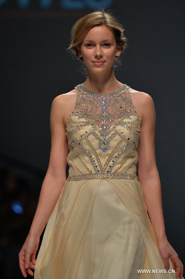 A model presents a creation of Mon Cheri during the 2015 Shanghai Fashion Week Autumn/Winter in east China's Shanghai, April 12, 2015. (Xinhua/Guo Changyao)