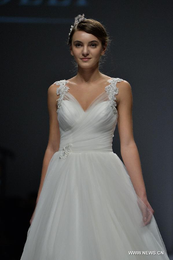 A model presents a creation of Mon Cheri during the 2015 Shanghai Fashion Week Autumn/Winter in east China's Shanghai, April 12, 2015. (Xinhua/Guo Changyao)