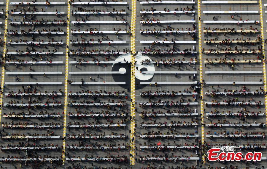 A total of 17,000 people simultaneously make dumplings while watching a cooking class video in 18 places in North China’s Henan province, April 12, 2015. With 4613 participants passing the challenge in the 50-minute long class, it set a Guinness World Record for the largest cooking class. The previous record involved 3,687 people making dumplings in Qingdao, Shandong province, February 14, 2015. (Photo: China News Service/Wang Zhongju) |