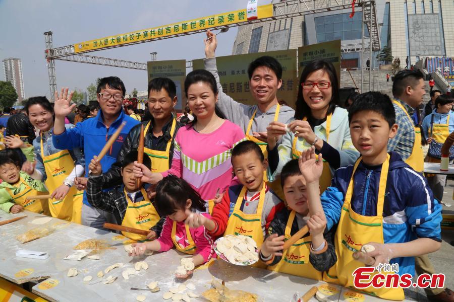 A total of 17,000 people simultaneously make dumplings while watching a cooking class video in 18 places in North China’s Henan province, April 12, 2015. With 4613 participants passing the challenge in the 50-minute long class, it set a Guinness World Record for the largest cooking class. The previous record involved 3,687 people making dumplings in Qingdao, Shandong province, February 14, 2015. (Photo: China News Service/Wang Zhongju) |