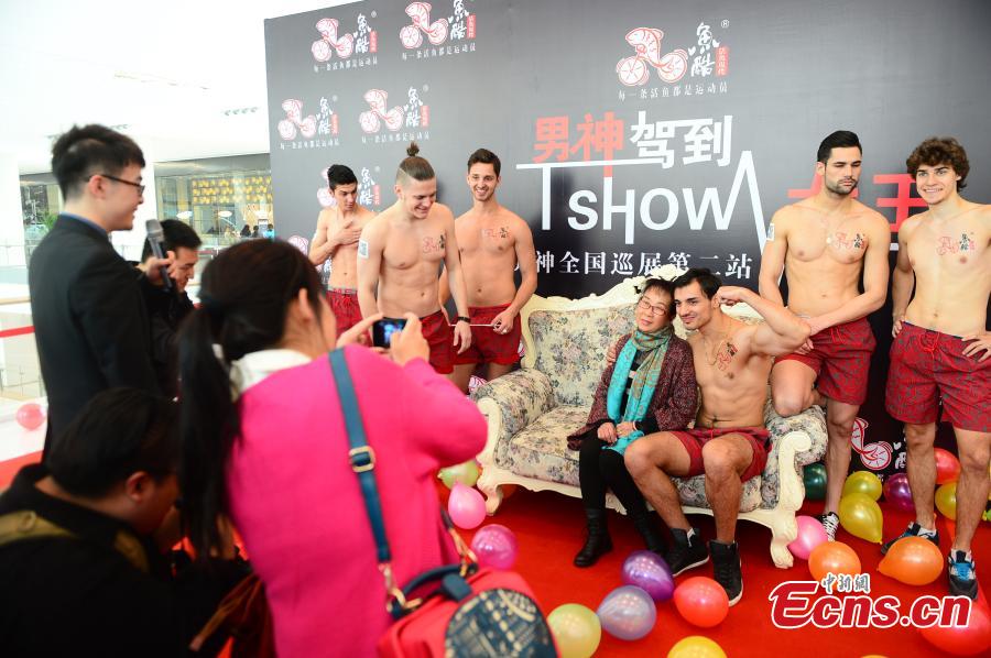 Topless male models serve customers at a restaurant in Tianjin municipality, April 11, 2015. The event was held to attract female customers and make them feel served like a queen, according to the organizer. (Photo: China News Service/Zhang Daozheng) |
