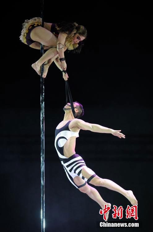 The semifinals of 2015 World Pole Dance Championships is held in China pole dance training centre on April 11, 2015. In the finals held in Beijing last Sunday, 43 contestants from 14 countries competed for singles and doubles titles. The top-notch pole dance competition was held in Asia for the first time.(Photo/Chinanews.com)
