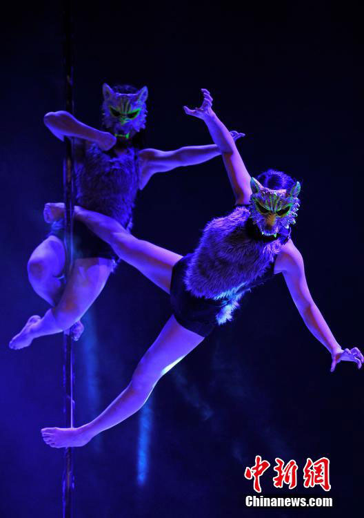 The semifinals of 2015 World Pole Dance Championships is held in China pole dance training centre on April 11, 2015. In the finals held in Beijing last Sunday, 43 contestants from 14 countries competed for singles and doubles titles. The top-notch pole dance competition was held in Asia for the first time.(Photo/Chinanews.com)