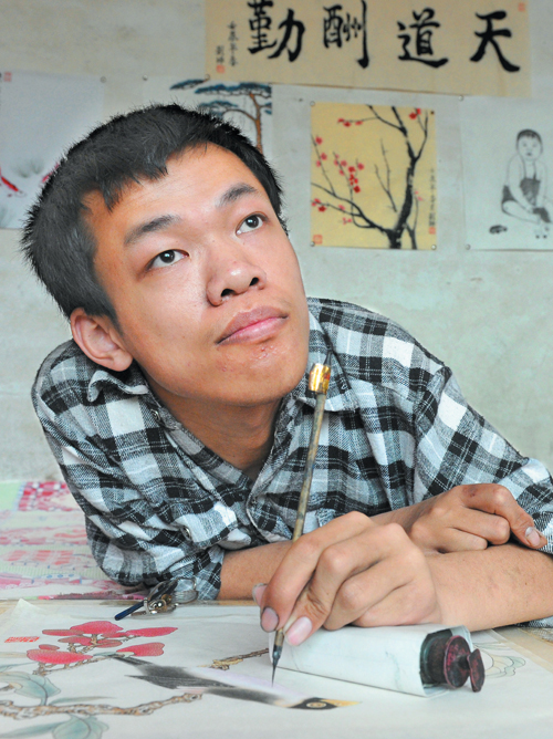 After Liu held an exhibition at the Shijiazhuang Museum in the provincial capital in 2011, a businessman started purchasing three of Liu's paintings every month for 600 yuan in order to help him.