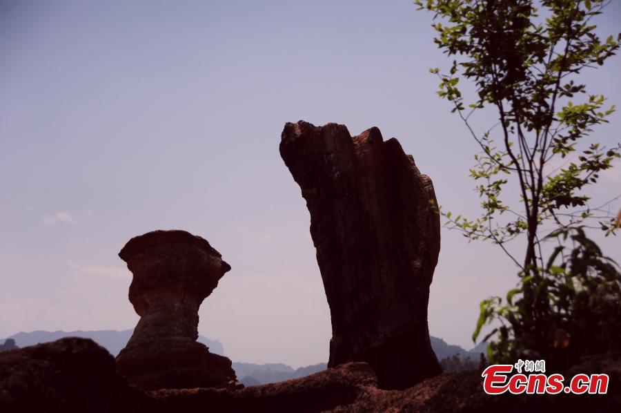 A view of Karst landform composed of red mudstone, valleys, and cliffs in Youyang county, Southwest China’s Chongqing municipality. The area is under development to become a tourist attraction. (Photo: China News Service/Chen Bisheng)