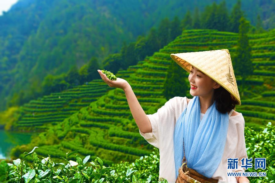 A girl picks tea leaves in a tea garden in Quzhou, Zhejiang. (Xinhua/Yu Shoushan)