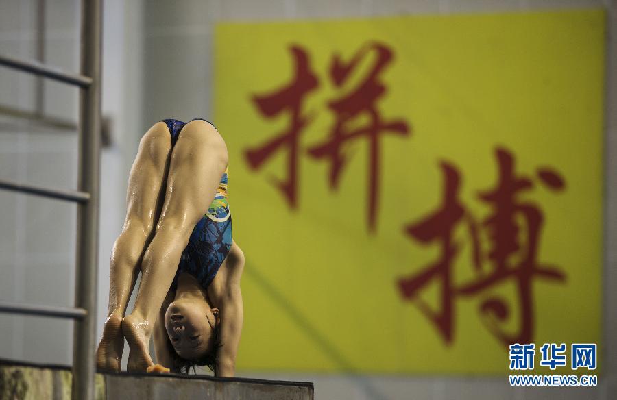 Little diving athletes are trained at the swimming center of Dongguan, Guangzhou, April 14, 2015. (Xinhuanew/Fei Maohua)