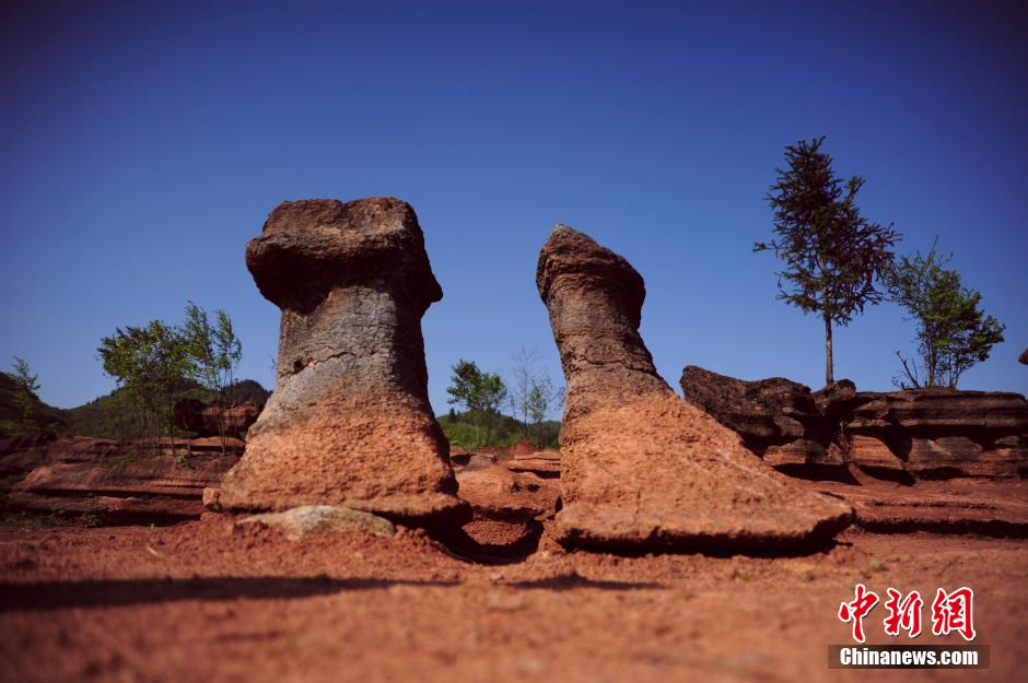 A large area of red rock forest is found in Baizhu village, 50 kilometers away from Youyang county, southwest China’s Chongqing city. Relevant authorities have taken measures to protect the forest. So far, nearly 66 hectares of red rock forest have been excavated, attracting many tourists to the site. (Chinanews/Cheng Bisheng)