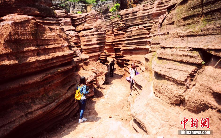 A large area of red rock forest is found in Baizhu village, 50 kilometers away from Youyang county, southwest China’s Chongqing city. Relevant authorities have taken measures to protect the forest. So far, nearly 66 hectares of red rock forest have been excavated, attracting many tourists to the site. (Chinanews/Cheng Bisheng)