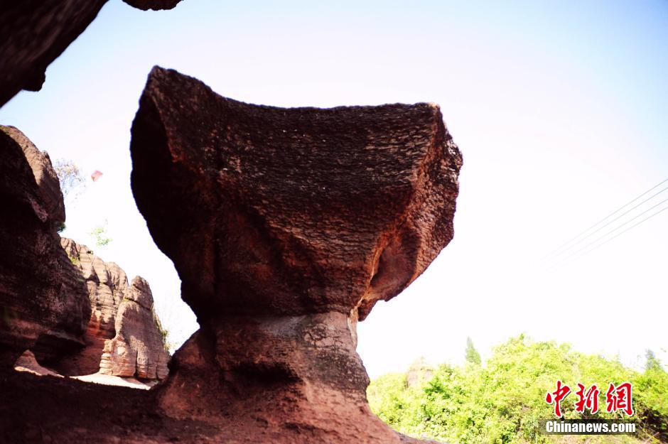 A large area of red rock forest is found in Baizhu village, 50 kilometers away from Youyang county, southwest China’s Chongqing city. Relevant authorities have taken measures to protect the forest. So far, nearly 66 hectares of red rock forest have been excavated, attracting many tourists to the site. (Chinanews/Cheng Bisheng) |