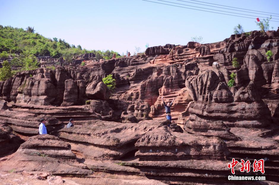 A large area of red rock forest is found in Baizhu village, 50 kilometers away from Youyang county, southwest China’s Chongqing city. Relevant authorities have taken measures to protect the forest. So far, nearly 66 hectares of red rock forest have been excavated, attracting many tourists to the site. (Chinanews/Cheng Bisheng) |