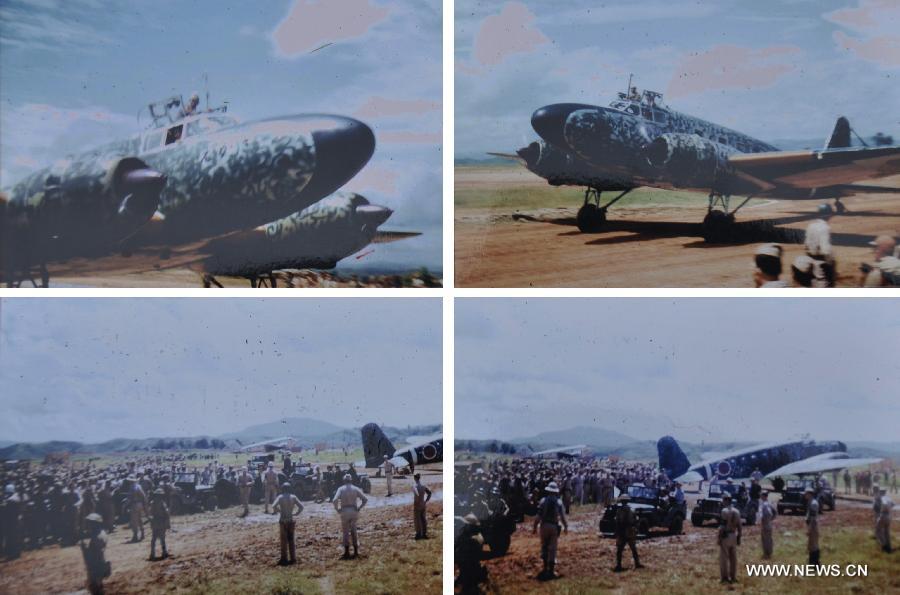 The copied file photos taken on August 21, 1945 by U.S. veteran Joe Day shows the Japanese representatives on their way to surrender after landing at the airport in Zhijiang County, central China's Hunan Province. A museum in Zhijiang Dong Autonomous County of Hunan Province debuted 32 color photos on April 17, 2015 that documented Japan's surrender in the province in August 1945. They were among 223 photos of the Chinese Anti-Japanese War donated last November by Joe Day, a member of the Flying Tigers, the 1st American Volunteer Group formed in 1941 to help China drive out invading Japanese troops. On August 21-23, 1945, Japanese representatives fled to Zhijiang, handed over a map of Japanese troops deployed in China and signed a surrender memorandum. (Xinhua/Ming Xing) |