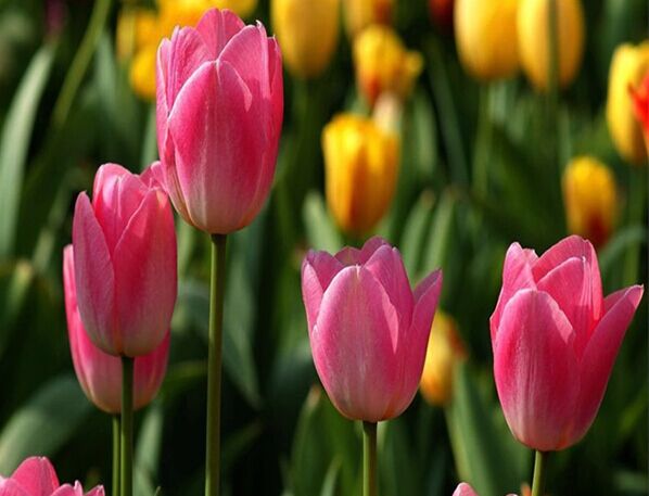 Tulips bloom in the Botanical Garden in Longzhong Tourist Site in Xiangyang.