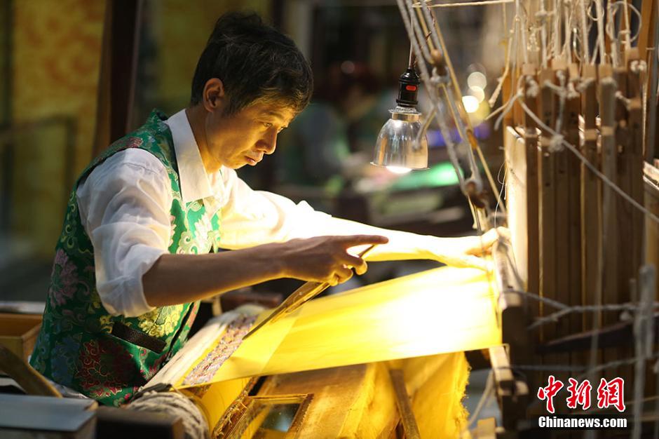 After a two-month renovation, Nanjing Brocade Museum reopens to the public on April 19, 2015. As an intangible cultural heritage of humanity, Nanjing brocade has a history of 1600 years and is one of the four famous brocades of China. The reopened museum puts much emphasis on introducing the production procedure of Nanjing brocade and displaying the choicest goods of China’s silk brocades. (Chinanews/Yang Bo)