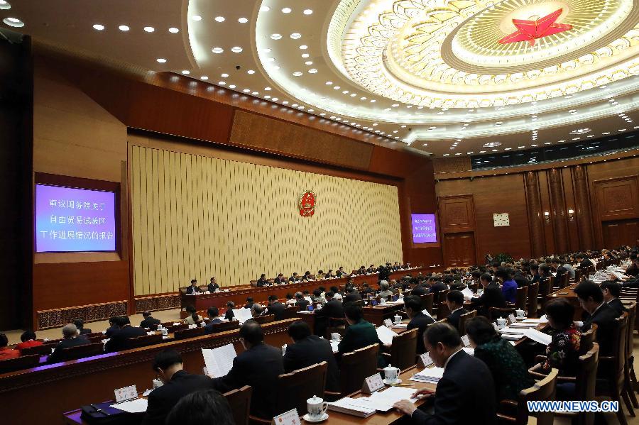 The second plenary session of the 14th meeting of the 12th National People's Congress (NPC) Standing Committee is held in Beijing, China, April 22, 2015. Zhang Dejiang, chairman of the NPC Standing Committee, attended the meeting. (Xinhua/Liu Weibing) |