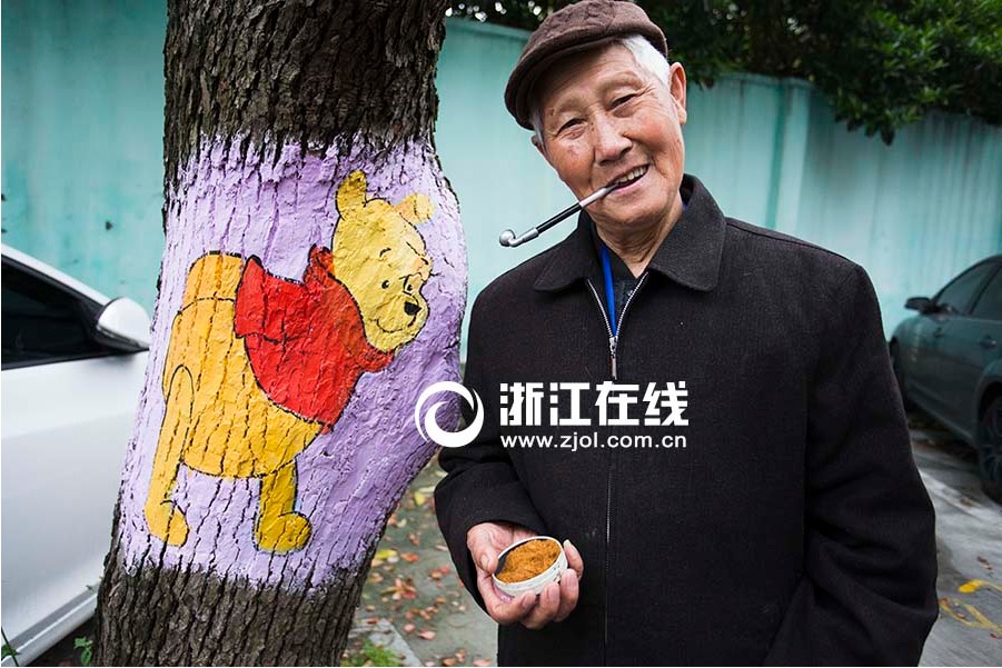 On the Tianyun Road of Hangzhou, cartoon characters are painted all over the trees on both sides of the road. Many people come and take pictures with these trees.