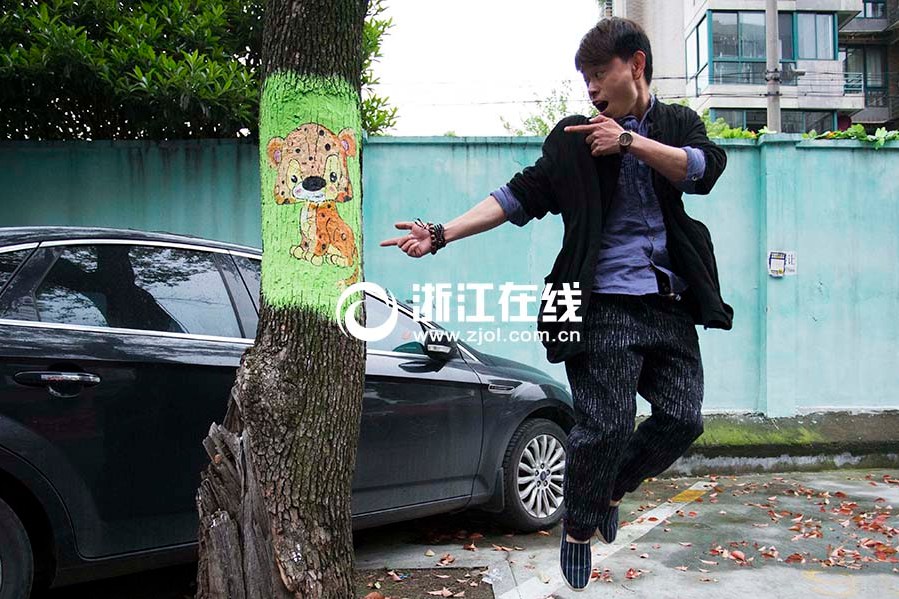 On the Tianyun Road of Hangzhou, cartoon characters are painted all over the trees on both sides of the road. Many people come and take pictures with these trees.