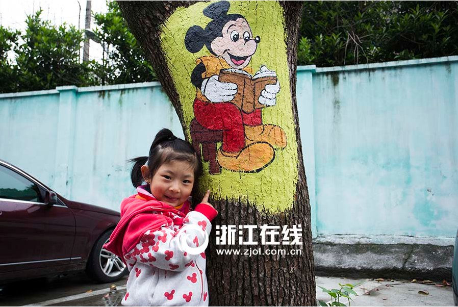On the Tianyun Road of Hangzhou, cartoon characters are painted all over the trees on both sides of the road. Many people come and take pictures with these trees.