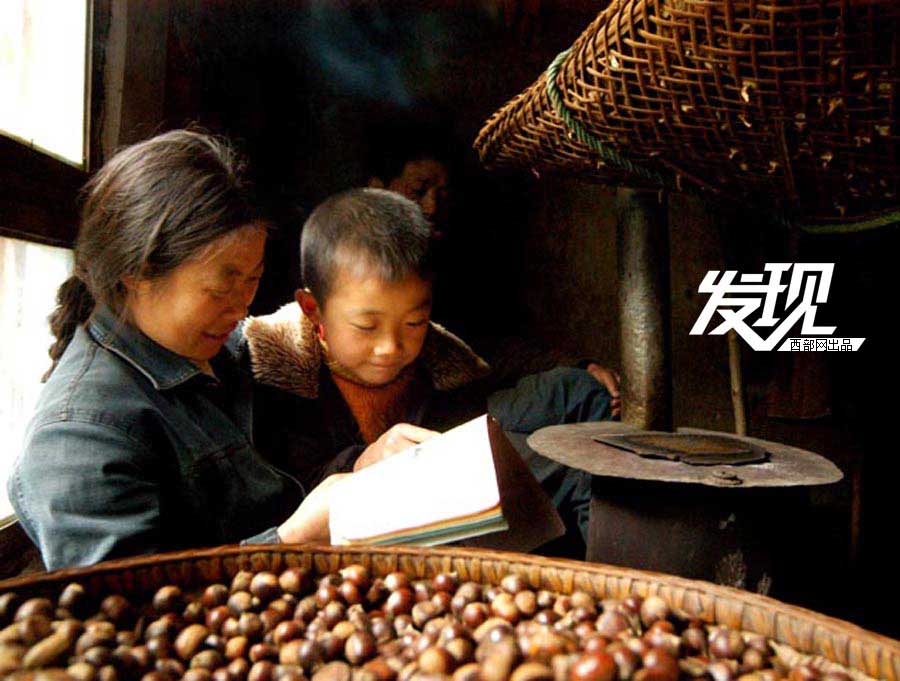 A mother teaches her child to read books by a coal stove.(Photo/cnwest.com)