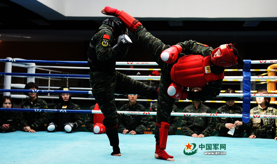 Female members are in fistfight training on March 23, 2015. (www.81.cn/Li Jing)