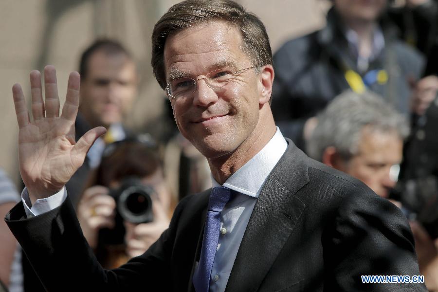 Dutch Prime Minister Mark Rutte arrives at the European Union (EU) extraordinary summit to discuss how to address the migratory pressures in the Mediterranean at the EU headquarters in Brussels, Belgium, on April 23, 2015. Only 28 migrants out of 700 seem to have survived by far after their boat capsized some 120 miles south of Lampedusa, Italy on Saturday night. (Xinhua/Zhou Lei)