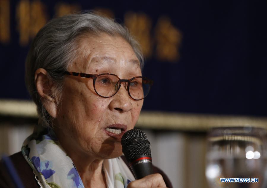 Kim Bok-tong, a former "comfort woman", speaks during a press conference in Tokyo, Japan, April 24, 2015. (Xinhua/Stringer)