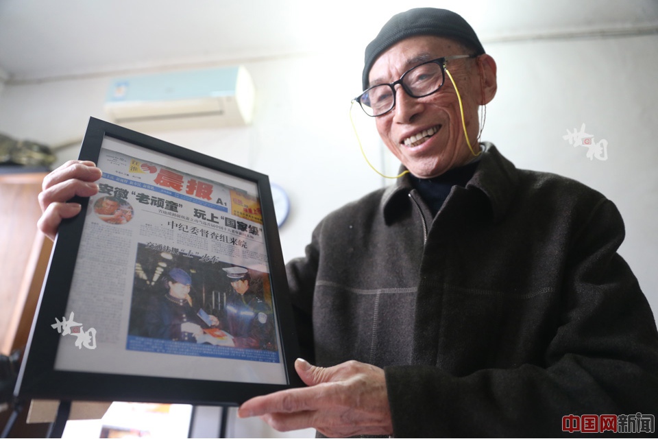 Xiao Ligong and his award of "China's senior newsmaker of the Year." (China.org/Fu Cun)