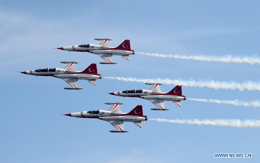 Turkish soldiers shoot during a ceremony marking the historic Gallipoli Battle in Canakkale, Turkey, April 24, 2015. Turkish President Recep Tayyip Erdogan and British Prince of Wales Charles Friday joined more than 18,000 people to mark 100th anniversary of the Gallipoli Battle. (Xinhua/He Canling) |