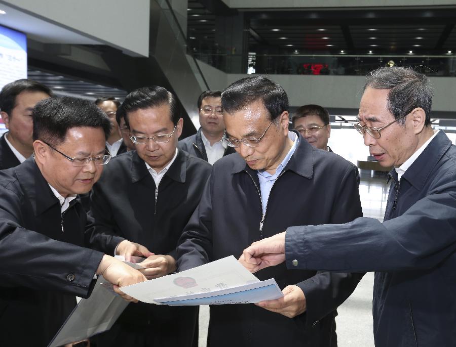 Chinese Premier Li Keqiang (2nd R, front) inspects Xiamen Area of China (Fujian) Pilot Free Trade Zone in Xiamen, southeast China's Fujian Province, April 22, 2015. Li visited cities of Xiamen, Quanzhou and Fuzhou of Fujian province from April 22 to 24. (Xinhua/Ding Lin) |