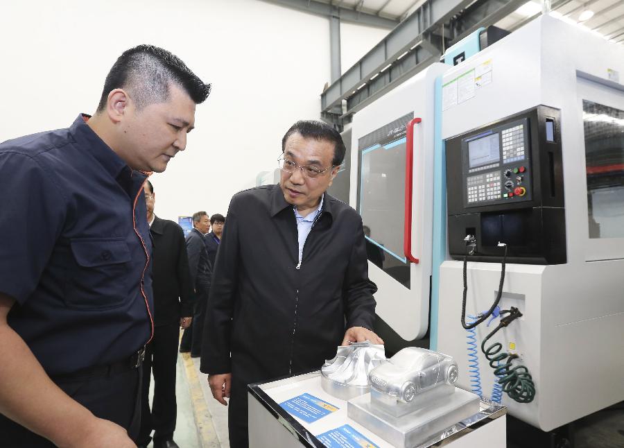 Chinese Premier Li Keqiang visits J-Tech CNC Machinery Co., Ltd. in Quanzhou, southeast China's Fujian Province, April 23, 2015. Li visited cities of Xiamen, Quanzhou and Fuzhou of Fujian province from April 22 to 24. (Xinhua/Ding Lin)
