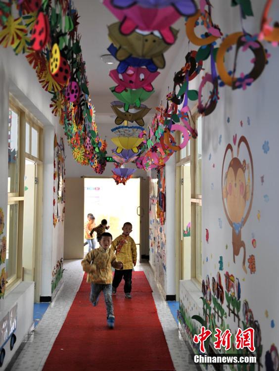 The corridor of the kindergarten is beautifully decorated. (Chinanews/Liu Zhongjun)5