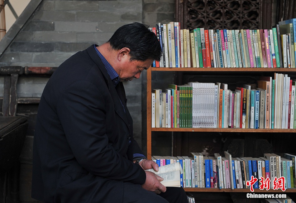 An old man reads in Zhengyang Bookstore of Beijing on April 21, 2015. (CNS/Li Peiyun)
