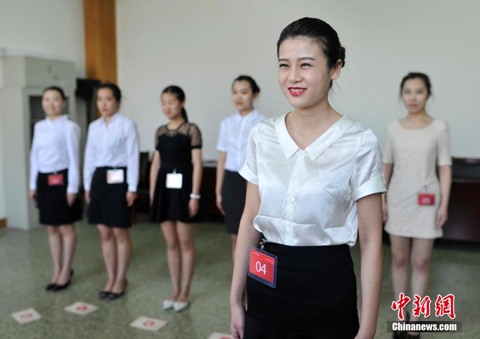 On April 23, 2015, many female students attend the interview for flight attendants by Hainan Airline in Shanxi University. (Chinanews/Wei Liang)