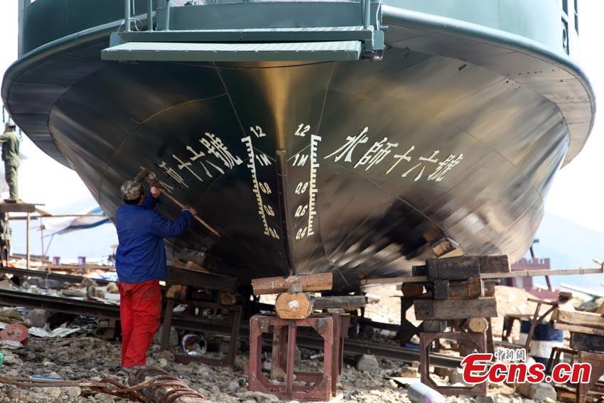 A replica of a warship from the reign of Emperor Kangxi in the Qing Dynasty (1644-1911) is under construction at Songhua Lake in Jilin city, Northeast China’s Jilin province. Six warships have been launched, with more to be completed. The city has been a base for shipbuilding since as early as the Ming Dynasty (1368-1644). (Photo: China News Service/Cang Yan)
