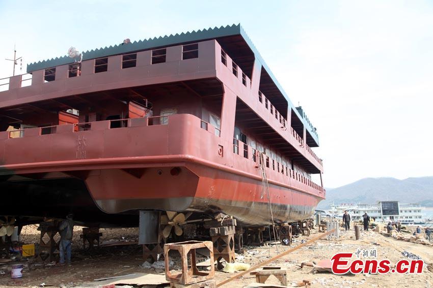 A replica of a warship from the reign of Emperor Kangxi in the Qing Dynasty (1644-1911) is under construction at Songhua Lake in Jilin city, Northeast China’s Jilin province. Six warships have been launched, with more to be completed. The city has been a base for shipbuilding since as early as the Ming Dynasty (1368-1644). (Photo: China News Service/Cang Yan)