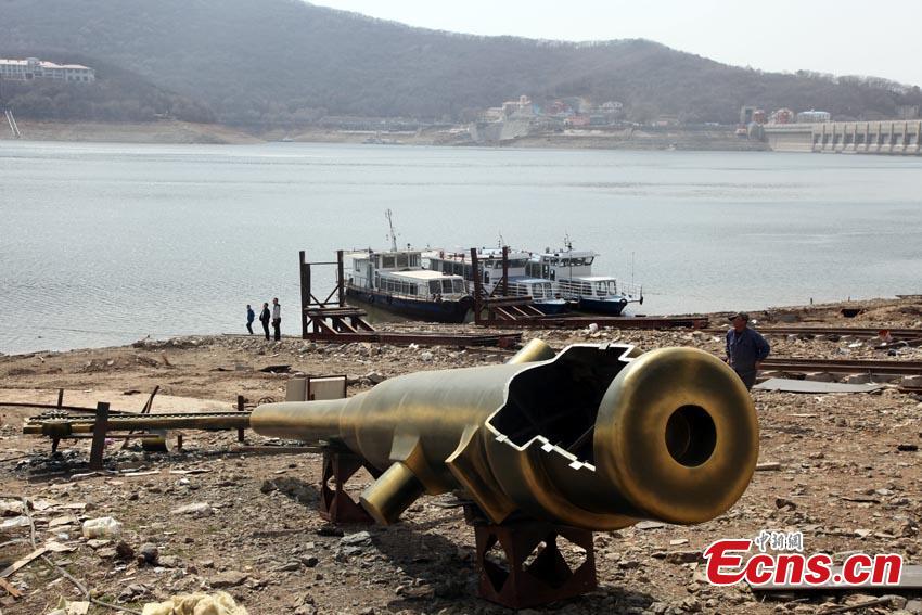 A replica of a warship from the reign of Emperor Kangxi in the Qing Dynasty (1644-1911) is under construction at Songhua Lake in Jilin city, Northeast China’s Jilin province. Six warships have been launched, with more to be completed. The city has been a base for shipbuilding since as early as the Ming Dynasty (1368-1644). (Photo: China News Service/Cang Yan) |