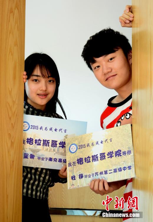 Students of UoG-UESTC Joint School (A four year undergraduate program jointly offered by the University of Glasgow and the University of Electronic Science & Technology of China) took stylish enrolment advertising photos in the alameda, teaching building, playground and dormitory of the school in late April 2015. Students held signs with words like “I am waiting for you in UoG-UESTC Joint School”. (Chinanews/Zhong Xin)