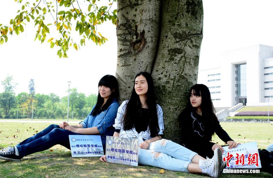 Students of UoG-UESTC Joint School (A four year undergraduate program jointly offered by the University of Glasgow and the University of Electronic Science & Technology of China) took stylish enrolment advertising photos in the alameda, teaching building, playground and dormitory of the school in late April 2015. Students held signs with words like “I am waiting for you in UoG-UESTC Joint School”. (Chinanews/Zhong Xin)