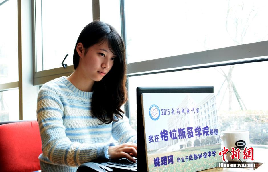 Students of UoG-UESTC Joint School (A four year undergraduate program jointly offered by the University of Glasgow and the University of Electronic Science & Technology of China) took stylish enrolment advertising photos in the alameda, teaching building, playground and dormitory of the school in late April 2015. Students held signs with words like “I am waiting for you in UoG-UESTC Joint School”. (Chinanews/Zhong Xin)