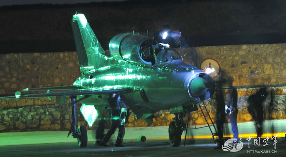 J-7 fighters of the Air force of the People's Liberation Army conduct training day and night at a military airport in southwest China recently. The training aims to improve the troop's coordination ability. (81.cn/Photo)
