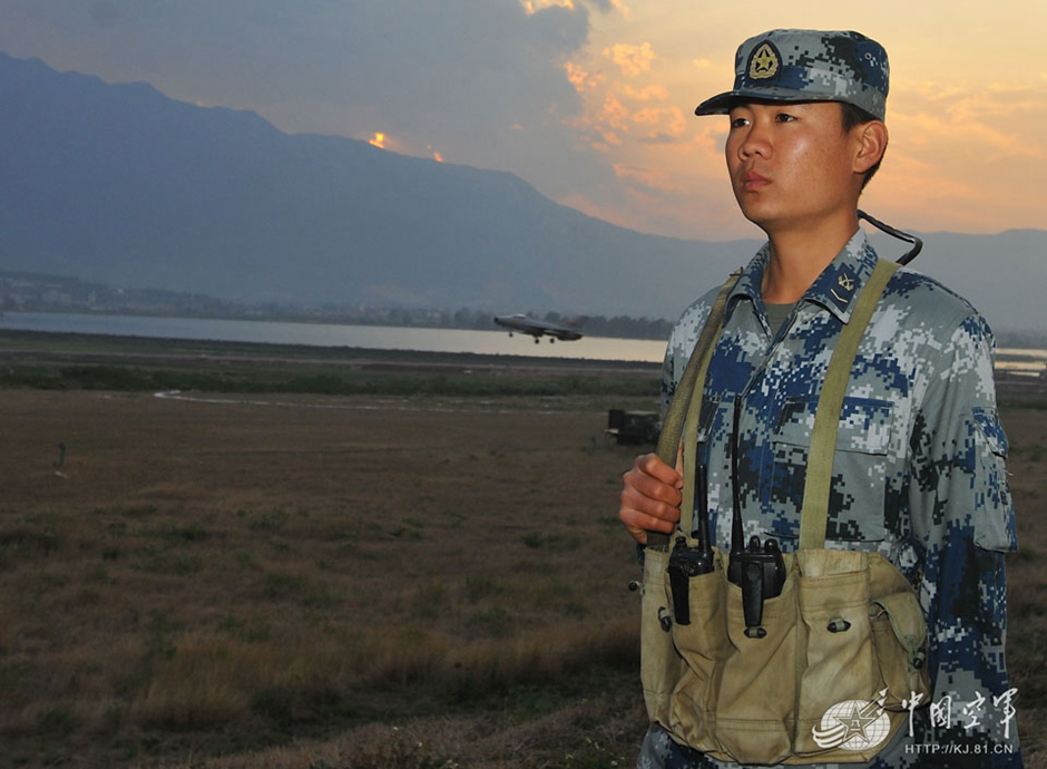 J-7 fighters of the Air force of the People's Liberation Army conduct training day and night at a military airport in southwest China recently. The training aims to improve the troop's coordination ability. (81.cn/Photo)