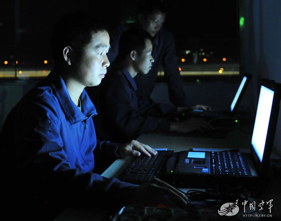 J-7 fighters of the Air force of the People's Liberation Army conduct training day and night at a military airport in southwest China recently. The training aims to improve the troop's coordination ability. (81.cn/Photo)