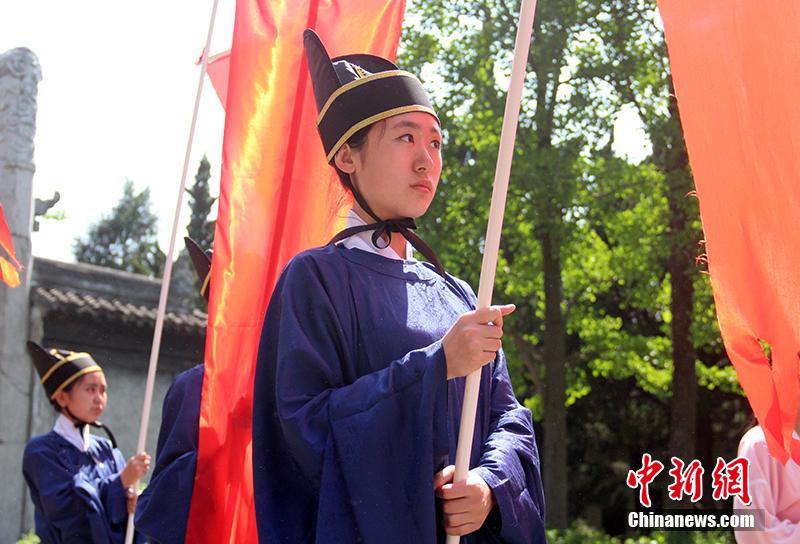 A grand archery ceremony was held in Suzhou, east China’s Jiangsu province to welcome the upcoming 57th World Table Tennis Championship on April 26, 2015. (Chinanews/Tang Yuwei)