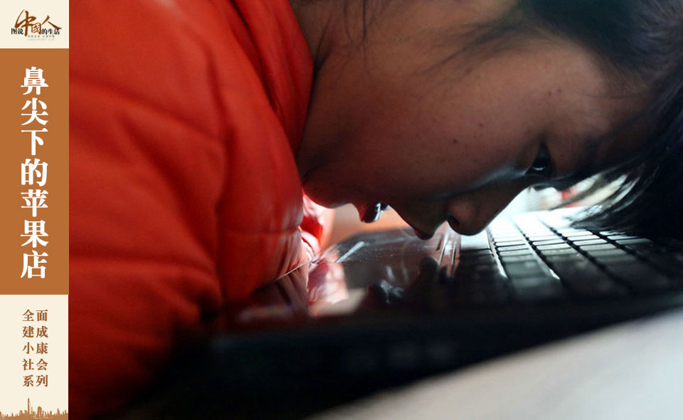 Guo Xiangge, 24, is the owner of an apple store in a village of Linyi county, in north China's Shanxi province. In contrast to other online store owners, she can only use her nose and her chin to manipulate a computer. She was born in 1991 and suffered brain damage due to oxygen deprivation.