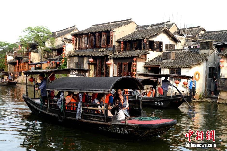As the May Day holiday nears, many tourists are flocking to the millennium town Xitang to travel. In Ming and Qing Dynasties, streets and residences of Xitang were built along the river, forming a unique and spectacular view: numerous bridges, alleys, and streets with roofs. In Xitang, there are 104 bridges and 122 alleys that witnessed the history of this ancient town. (Chinanews/Wang Dongming)