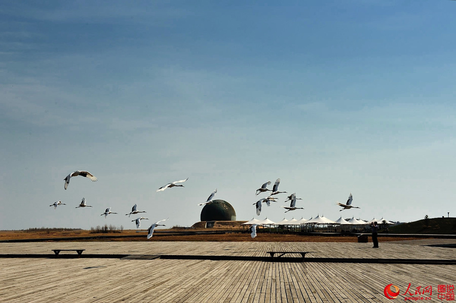 The red-crowned crane is a beautiful and precious bird. According to statistics, by the end of 2010, there were only 1,500 red-crowned cranes in the world and 1,000 of them would spend the winter in China. In Zhalong wetland in Qiqihar, northeast China’s Heilongjiang province, a nature protection area has been established to better protect the red-crowned crane. (Photo source: people.cn) |