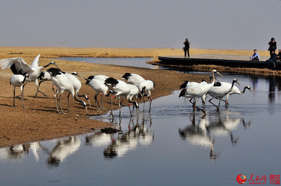 The red-crowned crane is a beautiful and precious bird. According to statistics, by the end of 2010, there were only 1,500 red-crowned cranes in the world and 1,000 of them would spend the winter in China. In Zhalong wetland in Qiqihar, northeast China’s Heilongjiang province, a nature protection area has been established to better protect the red-crowned crane. (Photo source: people.cn)