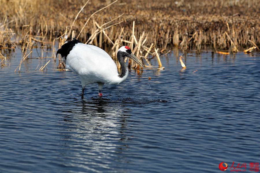 The red-crowned crane is a beautiful and precious bird. According to statistics, by the end of 2010, there were only 1,500 red-crowned cranes in the world and 1,000 of them would spend the winter in China. In Zhalong wetland in Qiqihar, northeast China’s Heilongjiang province, a nature protection area has been established to better protect the red-crowned crane. (Photo source: people.cn)